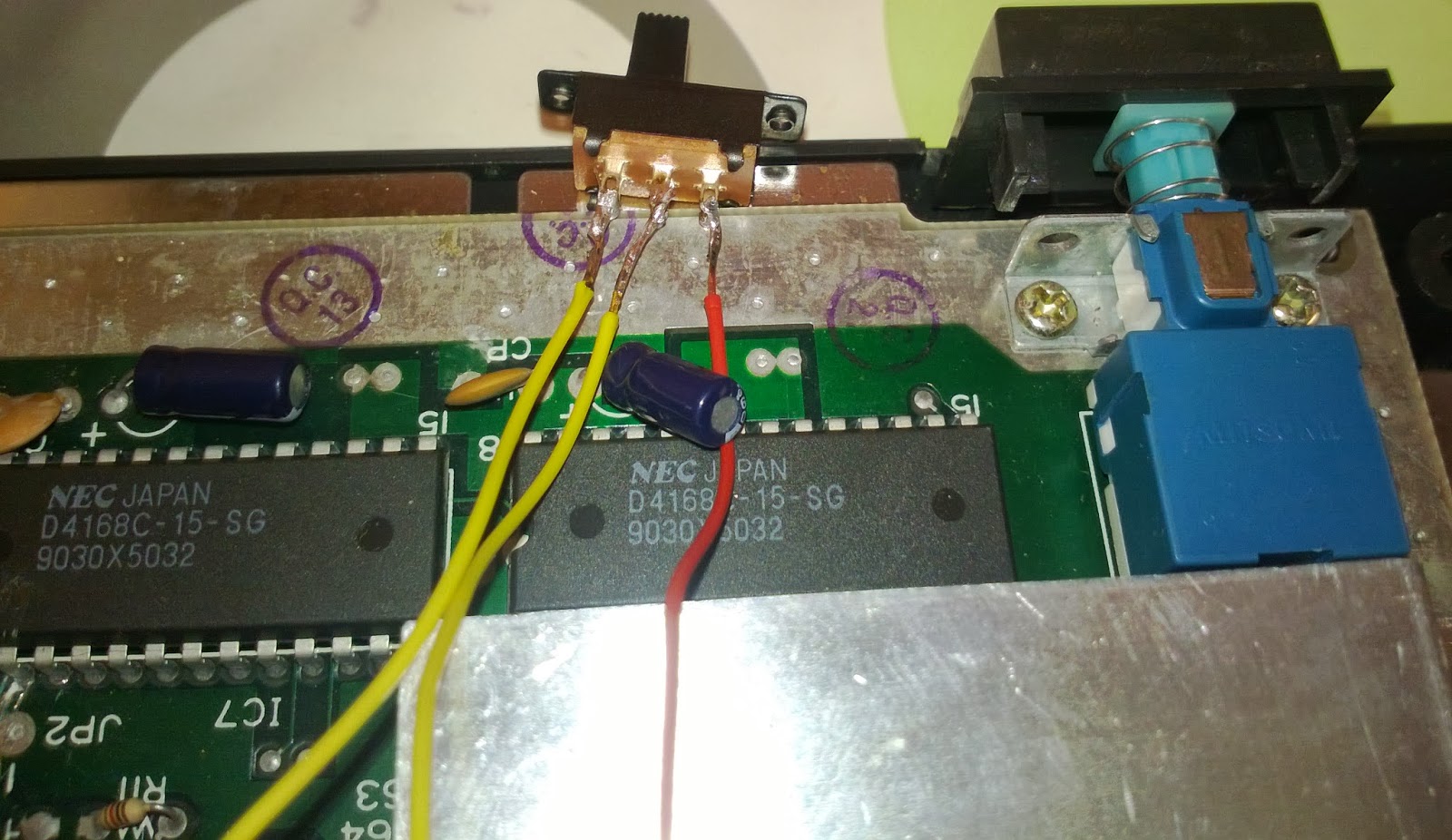 - 1 Interruptor de dos circuitos (En este caso es para poder optar entre la frecuencia de serie 3.5Mhz y la de overclock 4.434mhz)