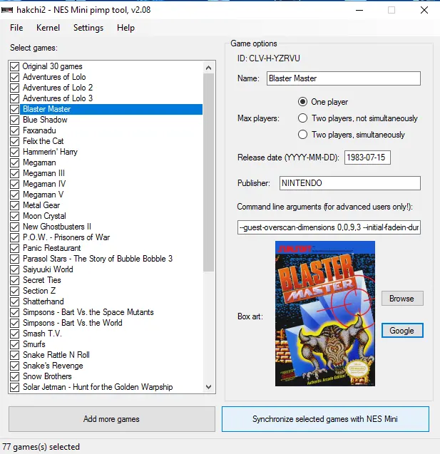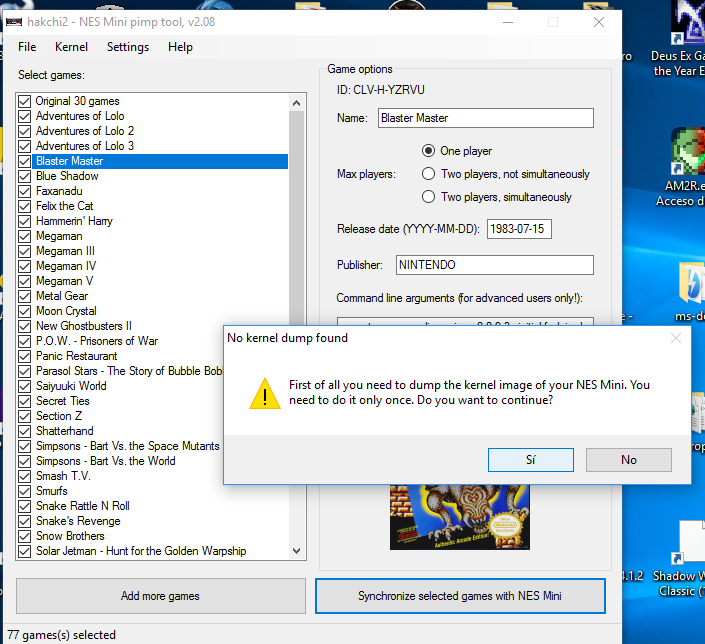 Ahora paso final darle al botón "Synchronize selected games with NES Mini"
