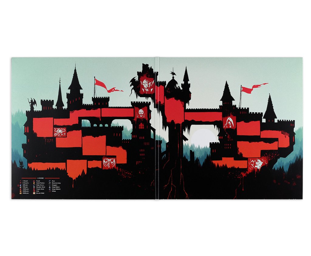 Hoy os traigo un vinilo de la casa Mondo que editó para el 30 aniversario de la saga Castlevania. La edición viene con la banda sonora original de la versión de Famicom/NES de 1986. Incluye los 12 temas del juego del castillo de Dracula. Hubo 3 ediciones distintas en los que únicamente variaba el color de los vinilos, en negro, rojo o la edición más original de color gris con salpicaduras negras y blancas. Las ilustraciones utilizadas son de la artista Becky Cloonan. Muchos de los temas chip tune del título, míticos dentro del mundo del videojuego, se han remezclado hasta los títulos más modernos.