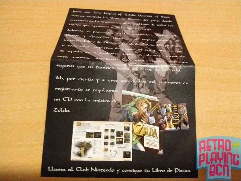 Aparte de la guía de textos, que no venía dentro de la caja por razones obvias de espacio, y la daban en las tiendas junto a la copia del juego, venían las tarjetas típicas de registro de Nintendo, un póster, papeleo vario y lo más importante, una tarjeta que nos hablava de una promoción del Club Nintendo la cual si llamabas te enviaban la guía oficial del juego completamente gratis a casa.