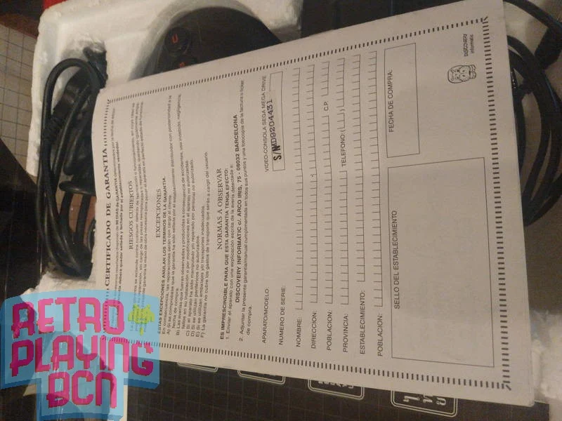 Os enseño algunas fotos detalladas de mi consola PAL ASIA. Cabe destacar que es una versión distribuída en españa, lleva un libro de instrucciones en el idioma original pero lo interesante es que adjuntaron un librillo de garantía en español, validado por la distribuidora o tienda en este caso Discovery Informatic, tienda con dirección en Barcelona. Los números de serie coinciden tanto en el manual como la caja.