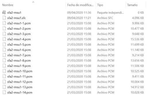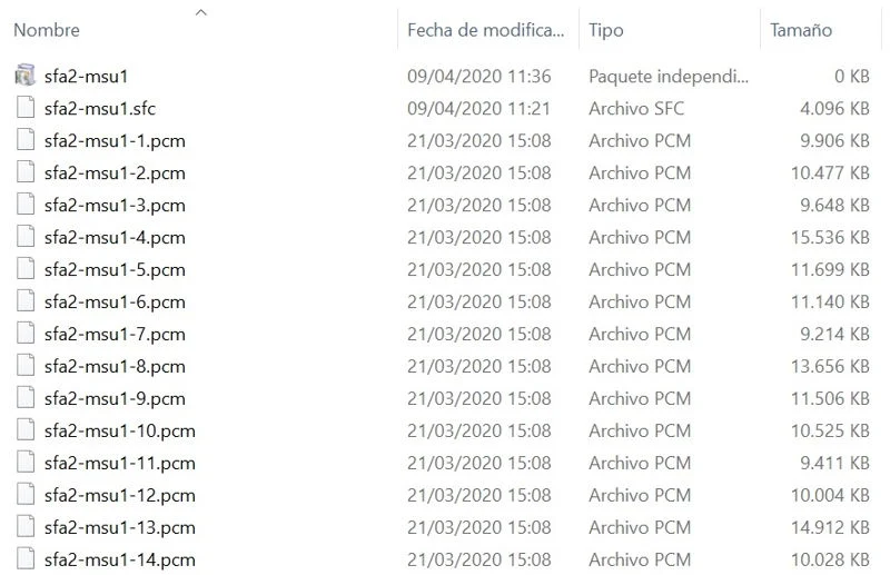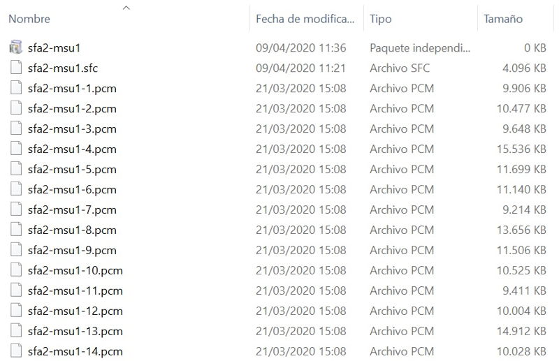 Los archivos PCM han de tener también el mismo nombre de la ROM y el archivo MSU, y siguen la estructura \\nombre-rom-msu1-X el X es cada archivo PCM que sigue numerado: 1,2,3,4,5, etc.