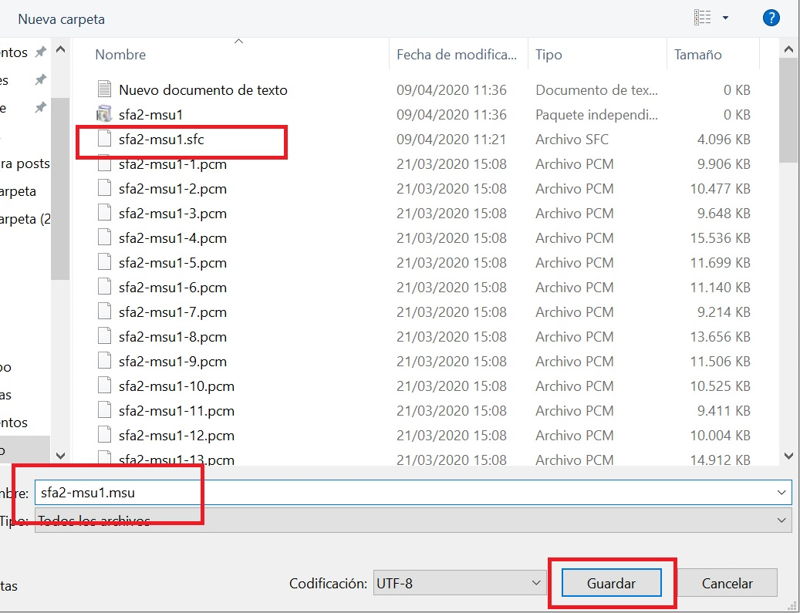 El programa te saca el archivo ya renombrado a MSU1 |