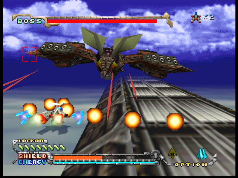 Los enemigos son como unos insectos, recuerda algo así como si fuera el Darius que usa peces o enemigos inspirados en los peces, pues aquí son insectos. Es un juego espectacular con unos jefes finales enormes, y tiene una dosis de estrategia jugable, ya que disparamos en dirección 3D guiados por una mira para apuntar, y podemos fijar la mira y disparar a los objetivos que seleccionemos para matar a los enemigos en grupo o en los jefes atacar estratégicamente diferentes partes del cuerpo.