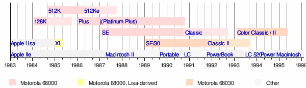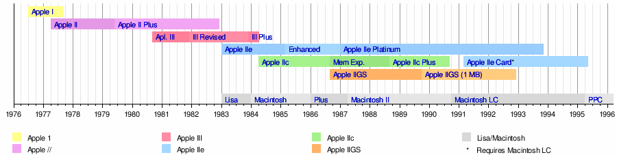 | Lineas temporales de los Macintosh y los Apple II |