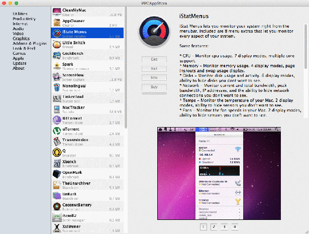 No fue hasta hace poco que descubrí la existencia de una AppStore independiente para aplicaciones de Mac OS 10.4 y 10.5: PPCAppStore. Esta tienda de aplicaciones te permite descargar cualquiera de las aplicaciones básicas que podrías necesitar en tu PowerMac en caso de que lo quieras utilizar, además de algunos temas que te permiten modificar la apariencia de MacOS para que parezca que tiene una versión más moderna.