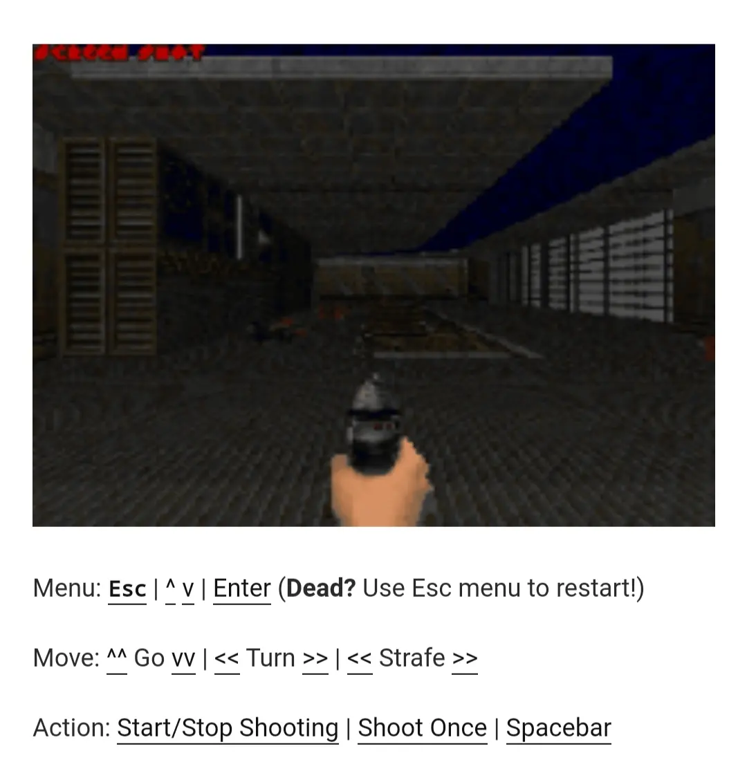 La página web colaborativa AO3 (Archive of Our Own) es una wiki donde la gente sube sus archivos proyectos etc y uno ha subido a los servidores de AO3 el archivo GIF que contiene el juego Doom instalado para jugarlo Online en tiempo real. Como el Doom tiene derechos de autor, han instalado el FreeDoom, que usa el motor de Doom y sus assets para que cualquiera los pueda compilar en un juego nuevo o interpretación del mismo Doom, nuevos mapas, etc sin incurrir en delitos contra los derechos de autor de la licencia comercial del juego.
