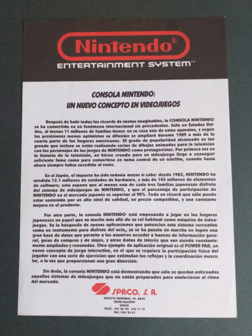 En muchos sitios se podía encontrar o un catalogo o un flyer que describía las bondades de las cuales la NES presumía en la época, y su genial campaña de ¡¡¡VEN AL MOGOLLON!!!, se pudo ver en muchísimas formas dejando claro que era la mejor opción de entretenimiento electrónico de época.