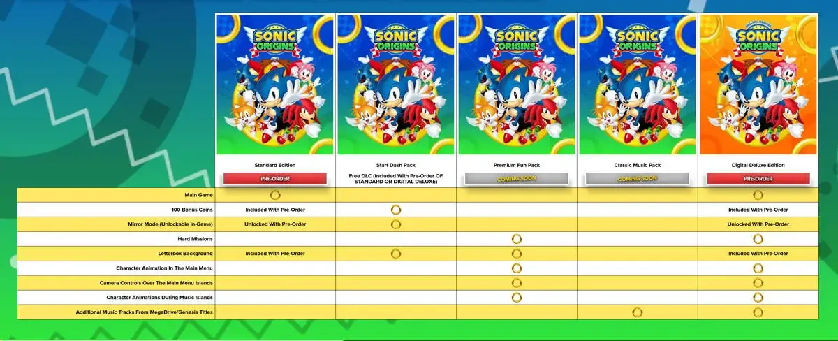 Ya es oficial por parte de Sega, dentro del marco de la celebración del 30 aniversario de la saga Sonic, un nuevo recopilatorio de los sonic clásicos remasterizados, con numerosos extras y sorpresas. Nos llegará de momento en formato digital en dos ediciones: la estándar, por 40€, y la Digital Deluxe a 45€. Esta última incluirá dos paquetes DLC que se podrán adquirir por separado por 4€.