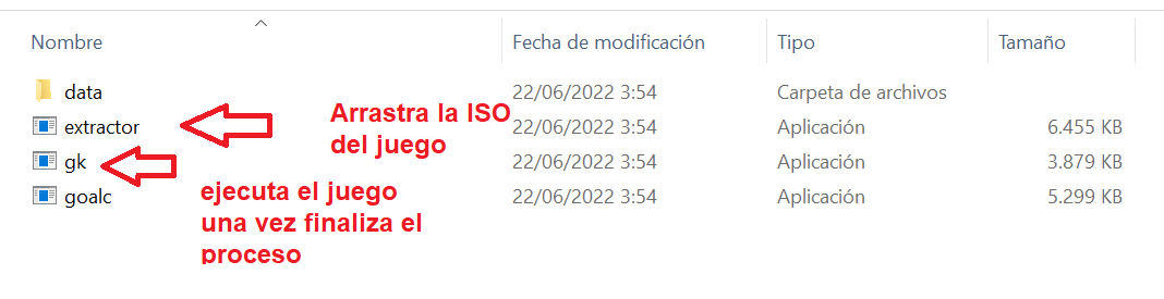 Descomprimir el OpenGOAL en una carpeta en el escritorio de Windows. Veréis que se compone de varias carpetas y archivos. El que nos interesa es el archivo "EXTRACTOR", al cual arrastraremos la ISO del juego.