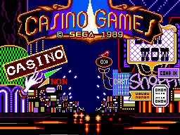 Casino Games es una recopilación de cinco juegos de apuestas: tres de cartas (poker, blackjack y baccarat), y dos de arcade (pinball y máquina tragaperras), simulando un casino de Las Vegas. Programado por compile y distribuido por Sega en 1989, también se convirtió en un juego bastante popular y extendido, pues es fácil de encontrar a día de hoy a buen precio completo.