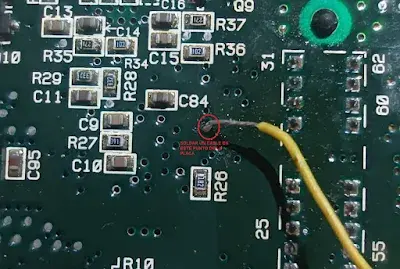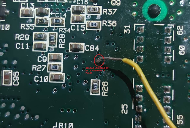 Localizamos los siguientes puntos de la placa: un agujerito debajo del C84, ver foto: