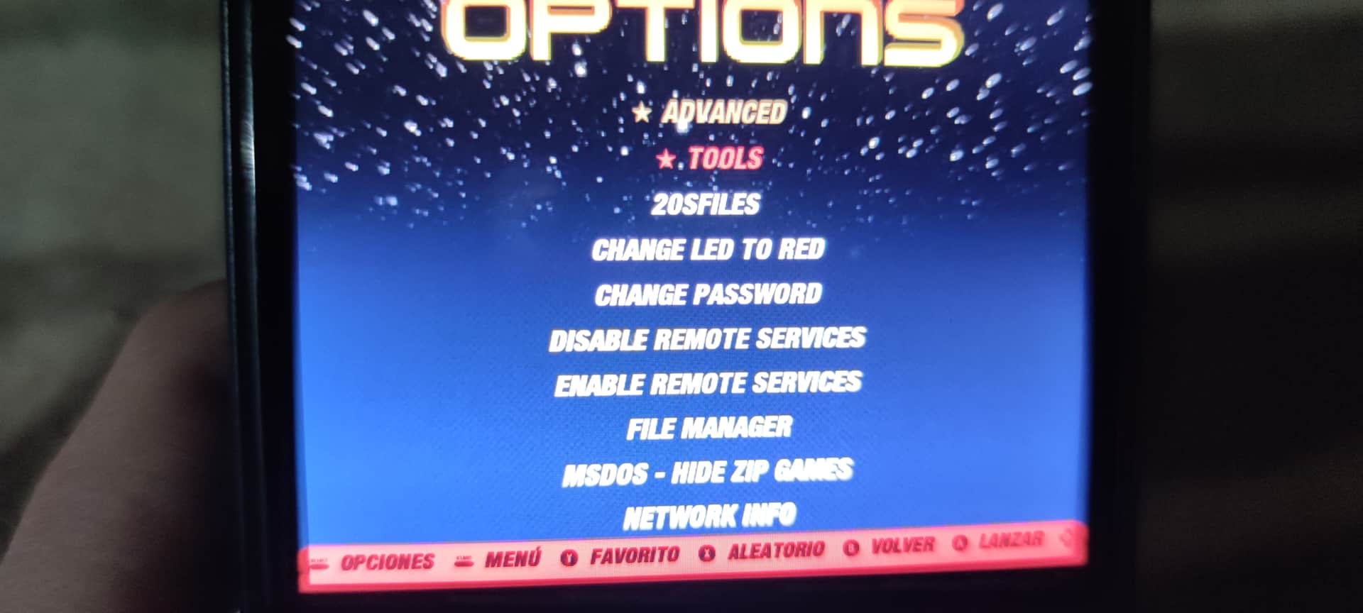 Ahora, reinicia la consola. Al cargar de nuevo, te debería salir la casilla "OPTIONS" en el menú de la consola, ábrelo y vete a la casilla "TOOLS" y selecciona el archivo que copiamos, el "Install.full.postmaster.sh" espera a que instale todo, tarda unos minutos, y acto seguido ejecuta también el archivo que se instaló llamado "Portmaster" para que acabe de instalarlo todo bien.
