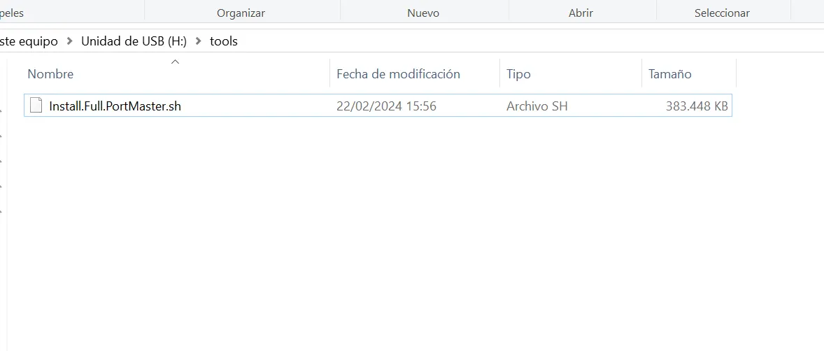 Lo primero, descargar el instalador del portmaster en la web oficial. El archivo que nos interesa es el llamado "Install.full.portmaster.sh". Ahora tenéis que grabar el archivo en la carpeta "TOOLS" dentro de la microSD que os viene con la R36S, la MicroSD que se ubica en el lector izquierdo, la que sólo contiene las carpetas de los sistemas con las ROMS que os vienen ya instaladas junto la consola.