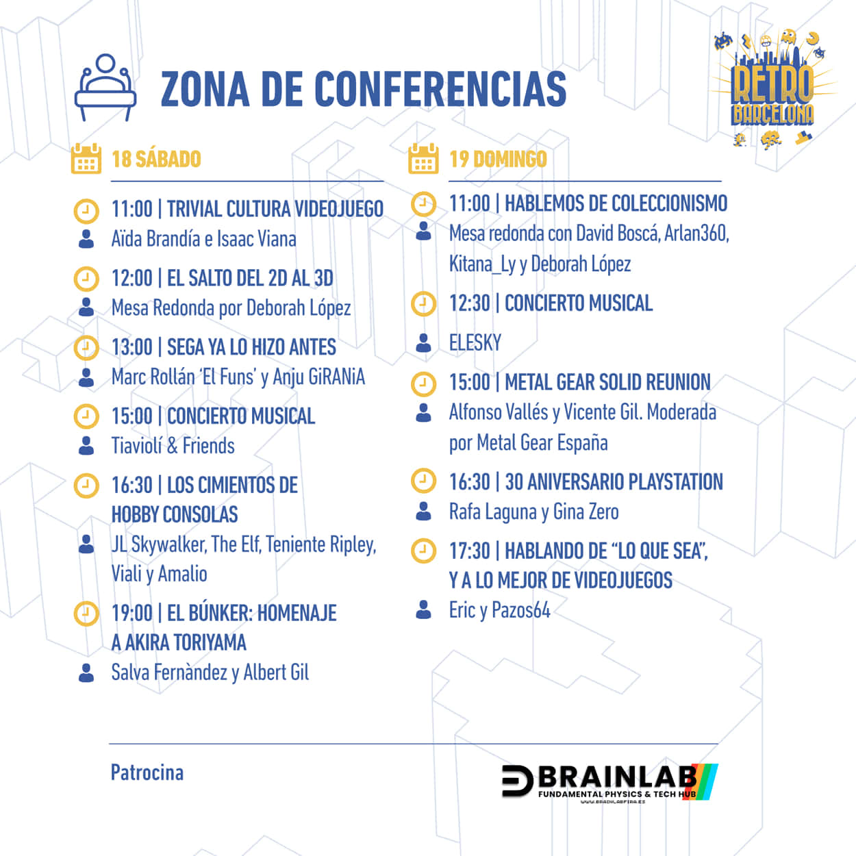 De la mano de BrainLab, patrocinador de la zona de conferencias, se presentan nuevas y fascinantes charlas para la 9ª edición de Retrobarcelona. Se ha preparado un excelente elenco de ponentes que ofrecerán conferencias educativas y entretenidas.