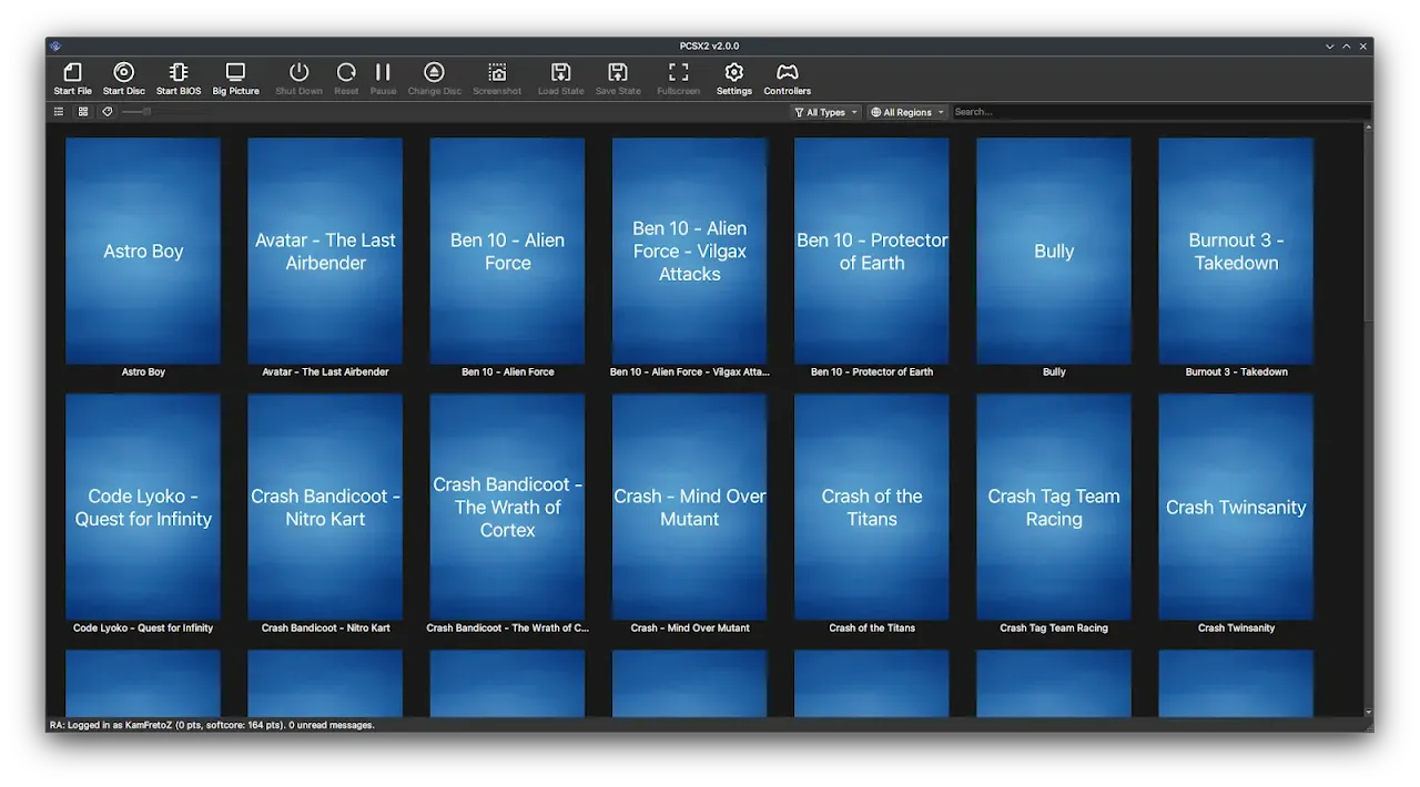 PCSX2 ahora incluye un modo Big Picture, ideal para los jugadores de sofá que desean navegar por los menús usando un controlador y una pantalla grande. Gracias a una nueva implementación de ImGui por Stenzek, puedes iniciar tus juegos sin levantarte del sofá y acceder a todos los menús importantes en modo Big Picture.