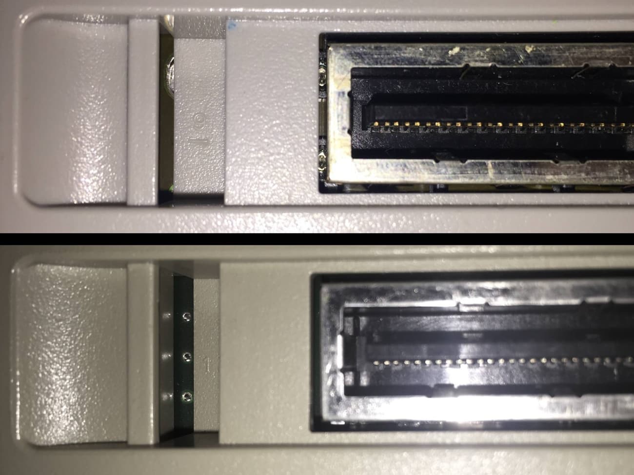 - Si veis entre la ranura tres puntitos, es una consola 2 Chip. Si lo veis liso, sin esos tres puntos, es que se trata de la 1 Chip.