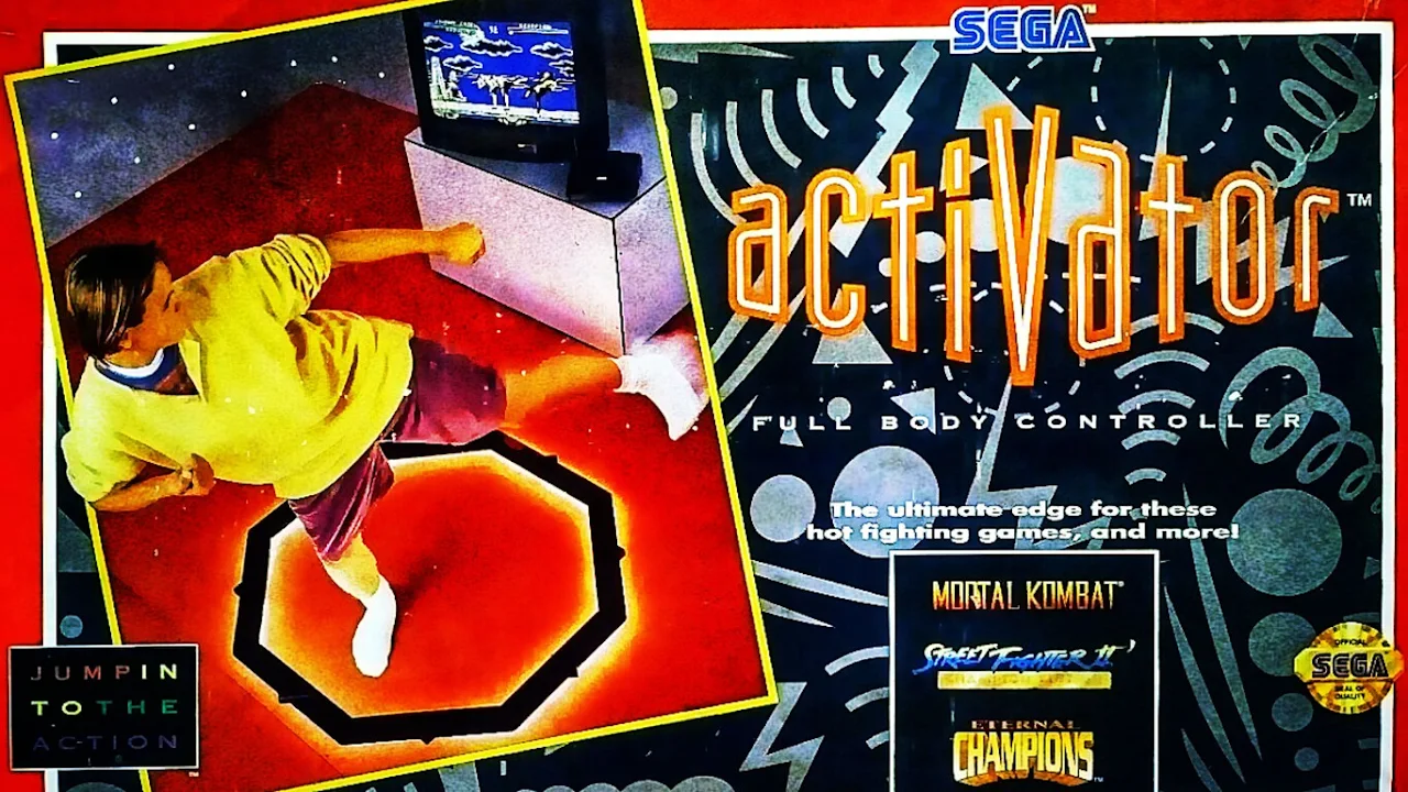 - Sega Activator: Un octágono de plástico en el suelo que permitía controlar los juegos con movimientos. Un intento precoz de control por movimiento, más curioso que funcional, hoy es pieza de coleccionista.