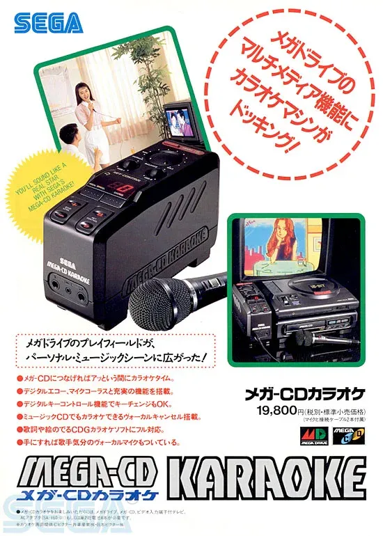 Cuando creímos que podíamos luchar como en Mortal Kombat… sin tocar el mando - Mega-CD Karaoke: Exclusivo de Japón, convertía la consola en máquina de karaoke con micrófonos y software especial.