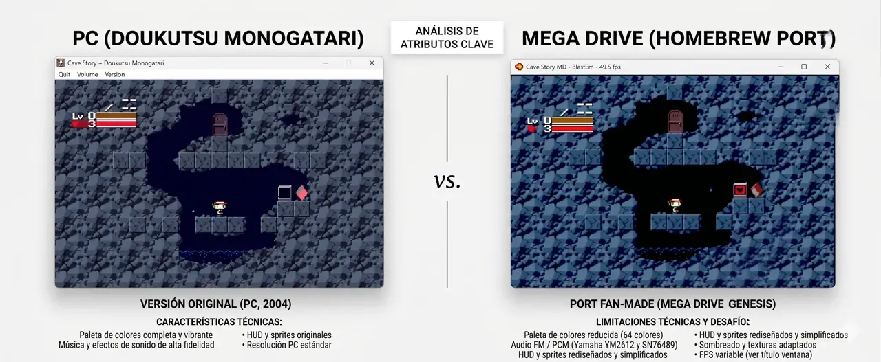 Llevar un juego como Cave Story a Mega Drive implica adaptar físicas, audio, gráficos y rendimiento a un hardware de 1988. Este tipo de proyectos homebrew demuestran hasta qué punto la comunidad sigue explorando los límites de consolas clásicas décadas después de su lanzamiento.